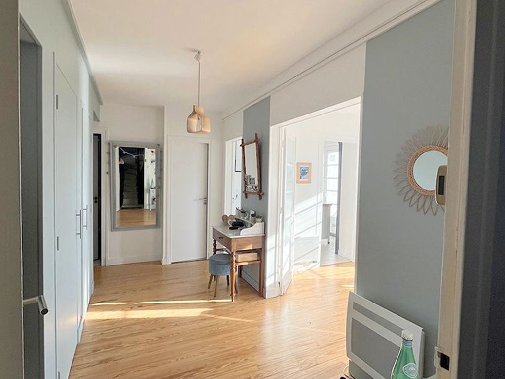 Royan- Bel appartement, traversant, lumineux, de 4 pièces, 3 chambres à deux pas du centre-ville et de la plage. Il possède une terrasse de 16 m² et un balcon de 10 m². Vous profitez d'une vue dégagée. Principalement baigné de lumière par le sud, vous profitez d'un séjour, une cuisine aménagée et équipée, une classieuse entrée avec placard. Le bien a été rénové, il y a une salle d'eau et un WC indépendant. Le chauffage est électrique, vous profitez d'un grand grenier à l'étage supérieur. L'appartement se situe à 200 mètres de la plage.