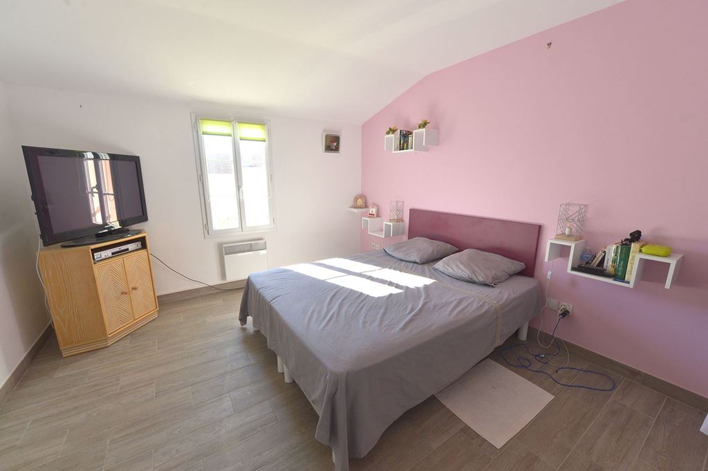 Maison d'habitation de 1985, mitoyenne d'un côté de 86m2, avec 3 chambres et garage, sur une parcelle close et arborée de 421 m².<...