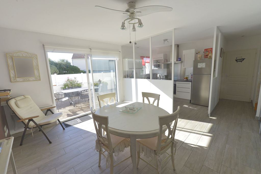 Côté extérieur, cette terrasse est paysager et ne nécessite aucun d'entretien. Le centre-ville se situe à environ 1100 mètres et la plage à 1300 mètres. Cette maison possède un DPE B . Ce bien construit il y a 12 ans, possède tous les modernismes d'une maison récente. Il n'y a aucun travaux à prévoir.Les informations sur les risques auxquels ce bien est exposé sont disponibles sur le site Géorisques : georisques.gouv.fr.